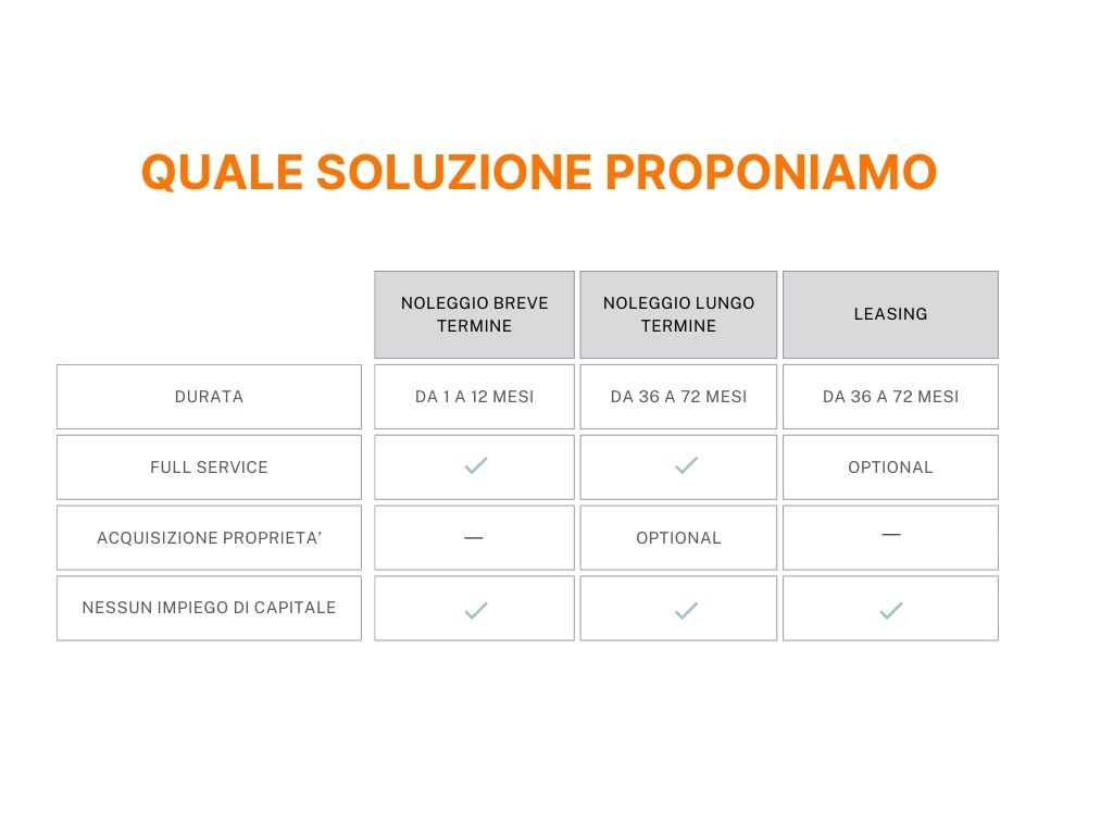Il noleggio di carrelli elevatori consente di gestire i picchi di lavoro con una soluzione flessibile, pratica e veloce, con costi chiari e precisi. Proponiamo un servizio di noleggio carrelli elevatori (24,36,48,60 e 72 mesi) offrendo al cliente l’opzione per un riscatto equivalente all’acquisto alla fine del noleggio.